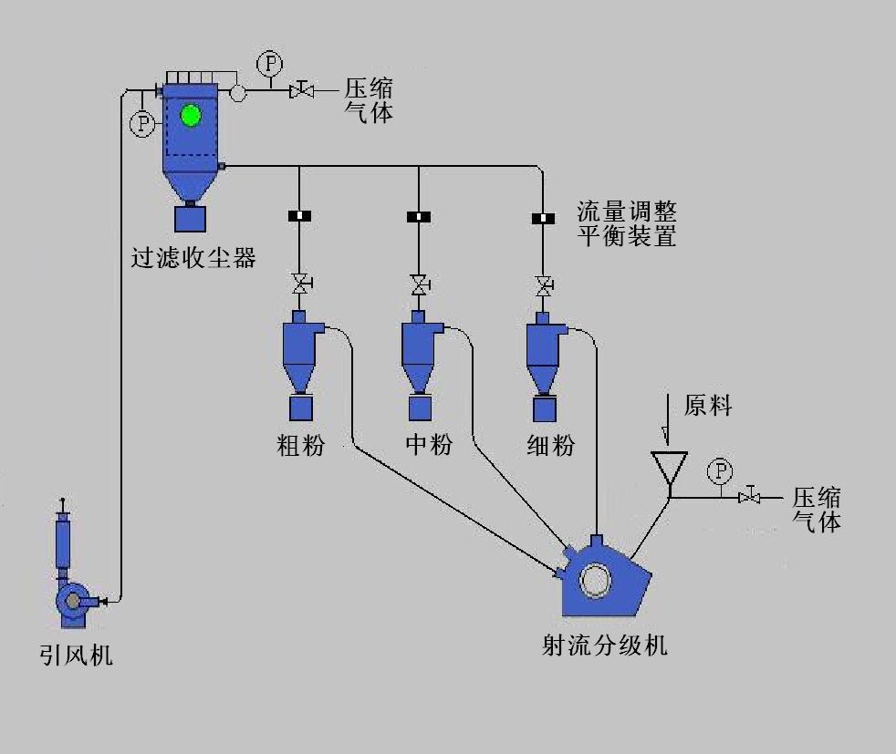 3)可同時分級得到粗、中、細三種粒度的產(chǎn)品